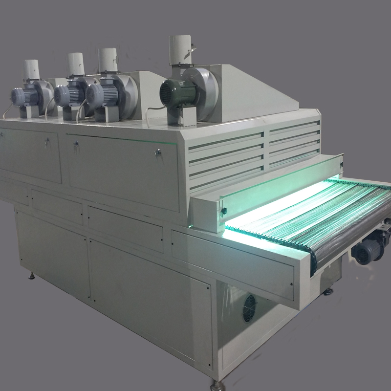 UV上光工藝就是用UV固化設(shè)備,通過(guò)紫外線對(duì)UV光油照射迅速將其固化,屬于光固化上光的一種。
