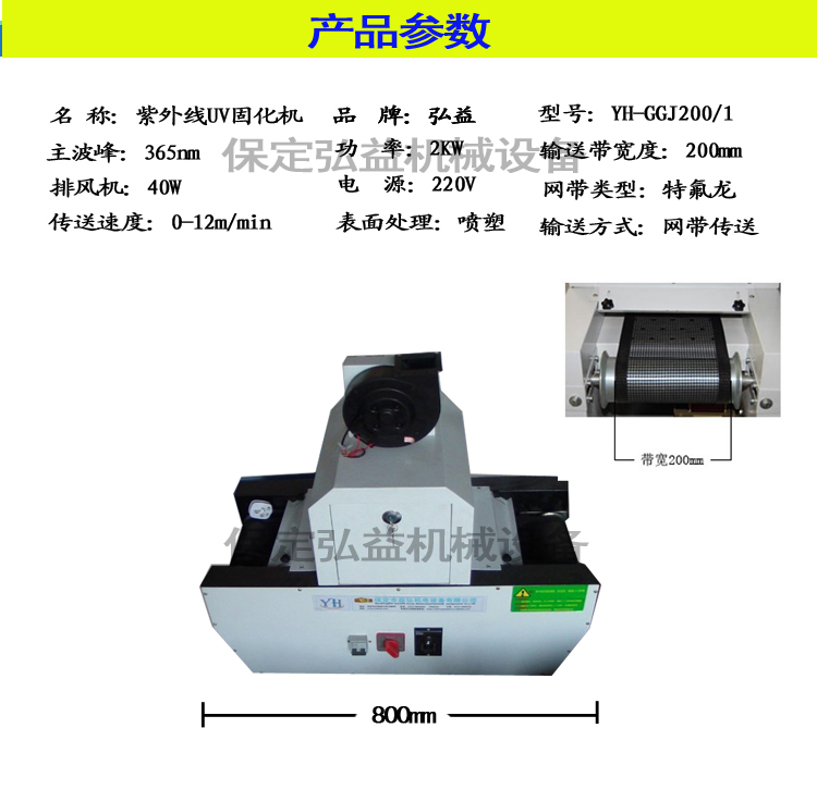 8、燈管照射寬度:200 mm