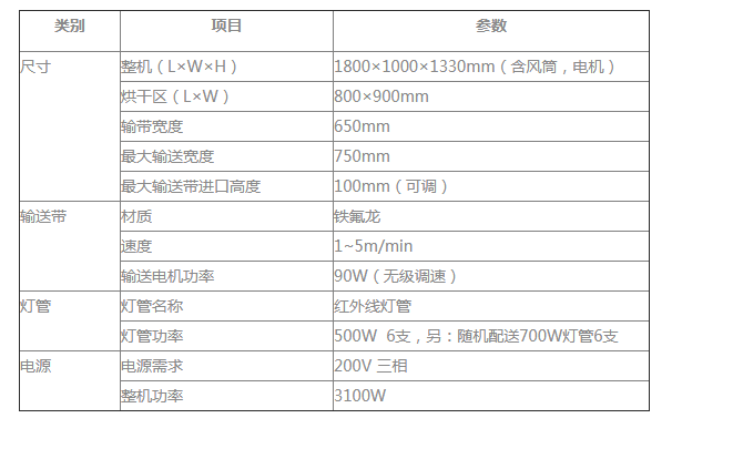紅外線燈管可以快速進(jìn)行高度調(diào)節(jié)。保證光源到傳送帶的距離設(shè)置的重復(fù)性。